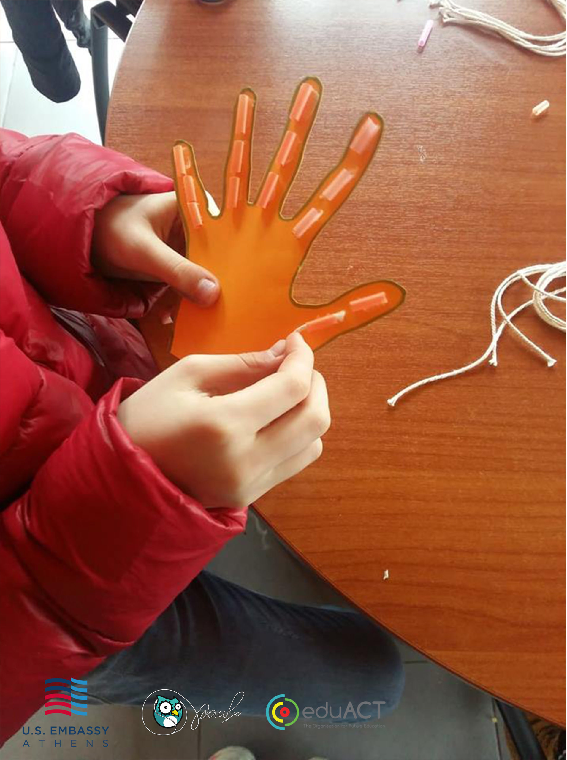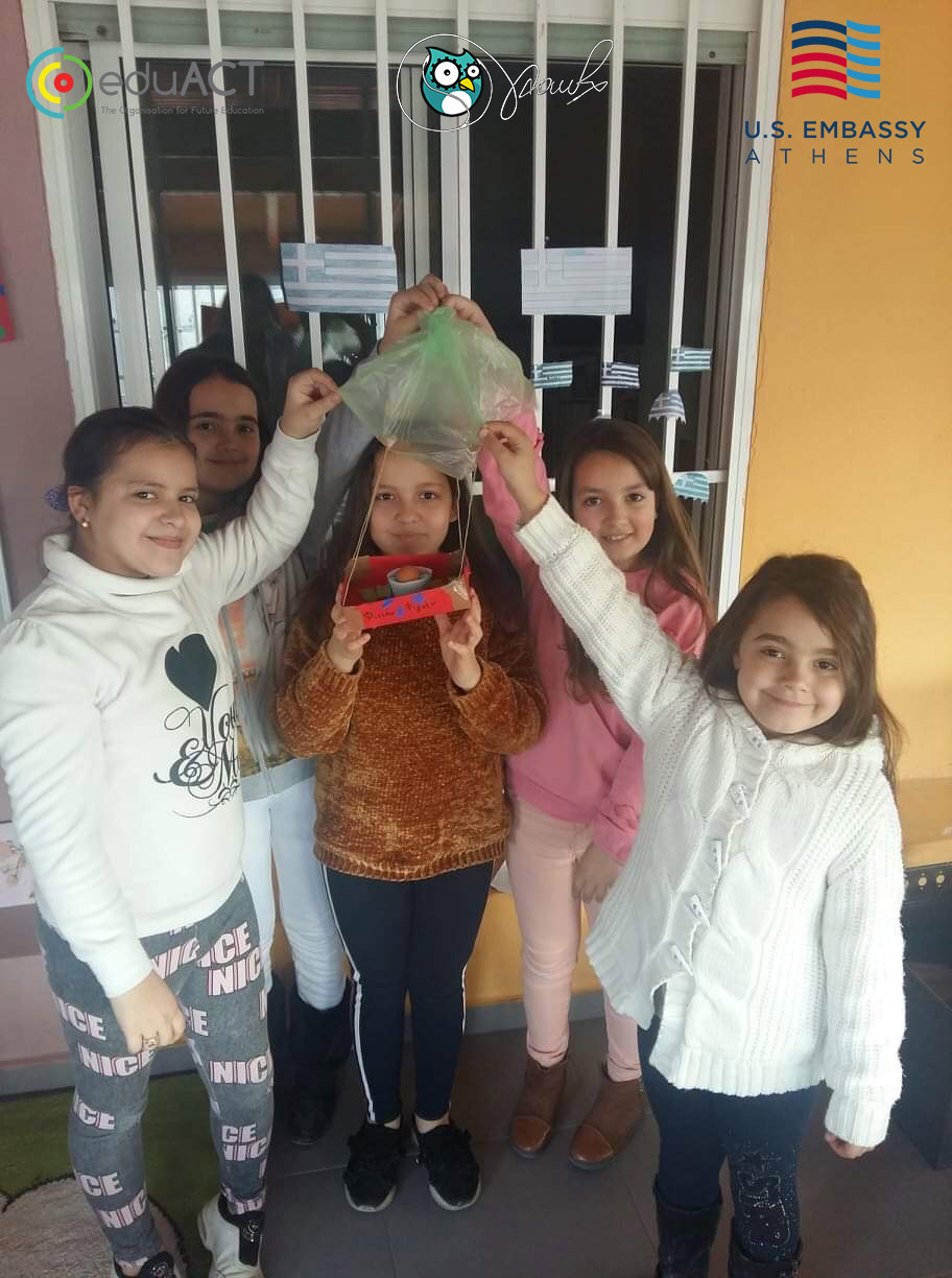 Στο 5ο εργαστήριο πραγματοποιήθηκαν δραστηριότητες STEM. Τα παιδιά δημιούργησαν το δικό τους μηχανικό χέρι και παρακολούθησαν δύο πειράματα.